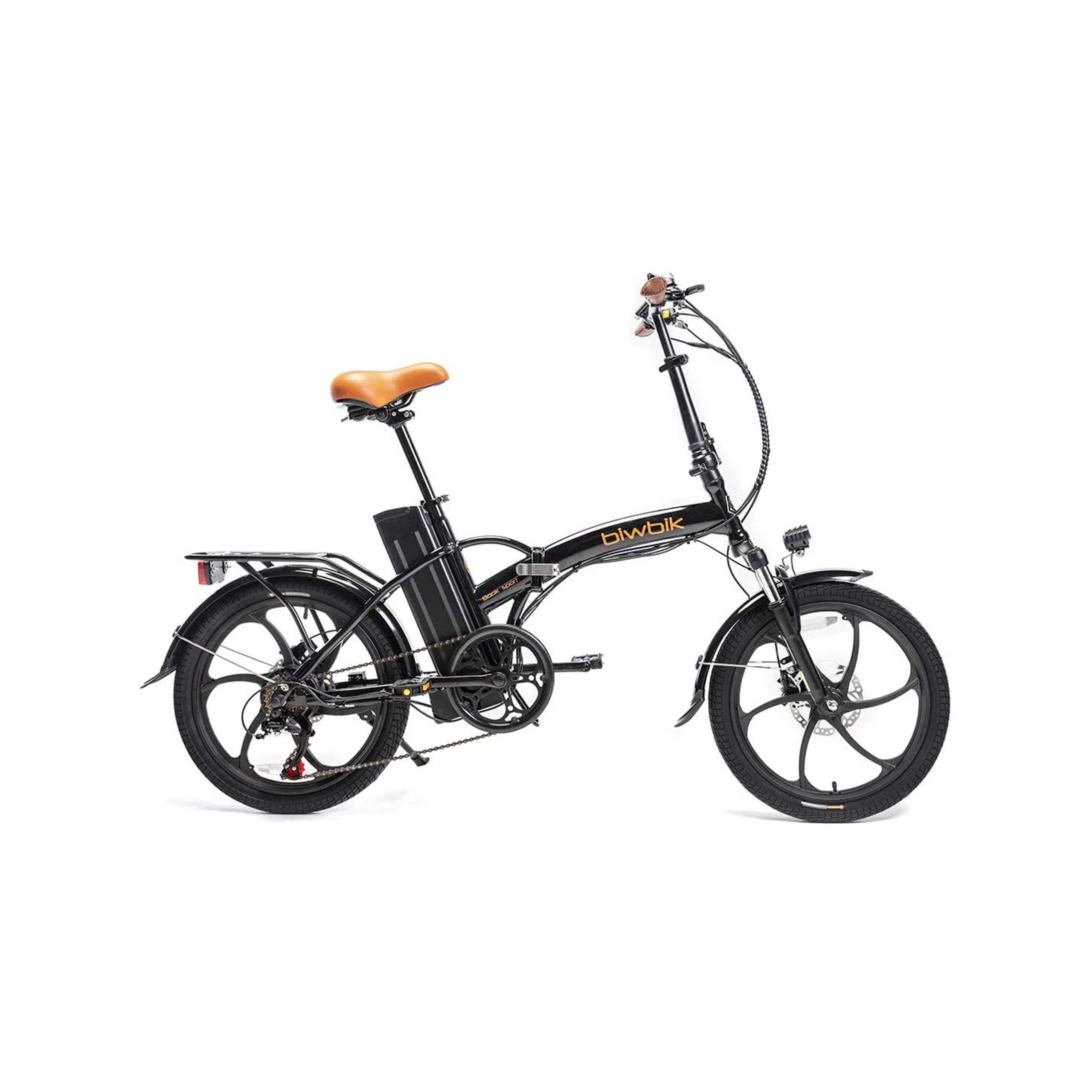 Vélo pliable. Système de pédalage assisté avec certification CE, avec 3 modes d’assistance au pédalage. Moteur sans balais de 250 W. Roues de 20″ (50,8 cm). Batterie au lithium de 36 V/10 Ah. Dérailleur Shimano à 6 vitesses. Phare avant LED. Autonomie de 35 à 65 km. Frein avant V-Brake. Frein arrière à tambour. Cadre en acier.