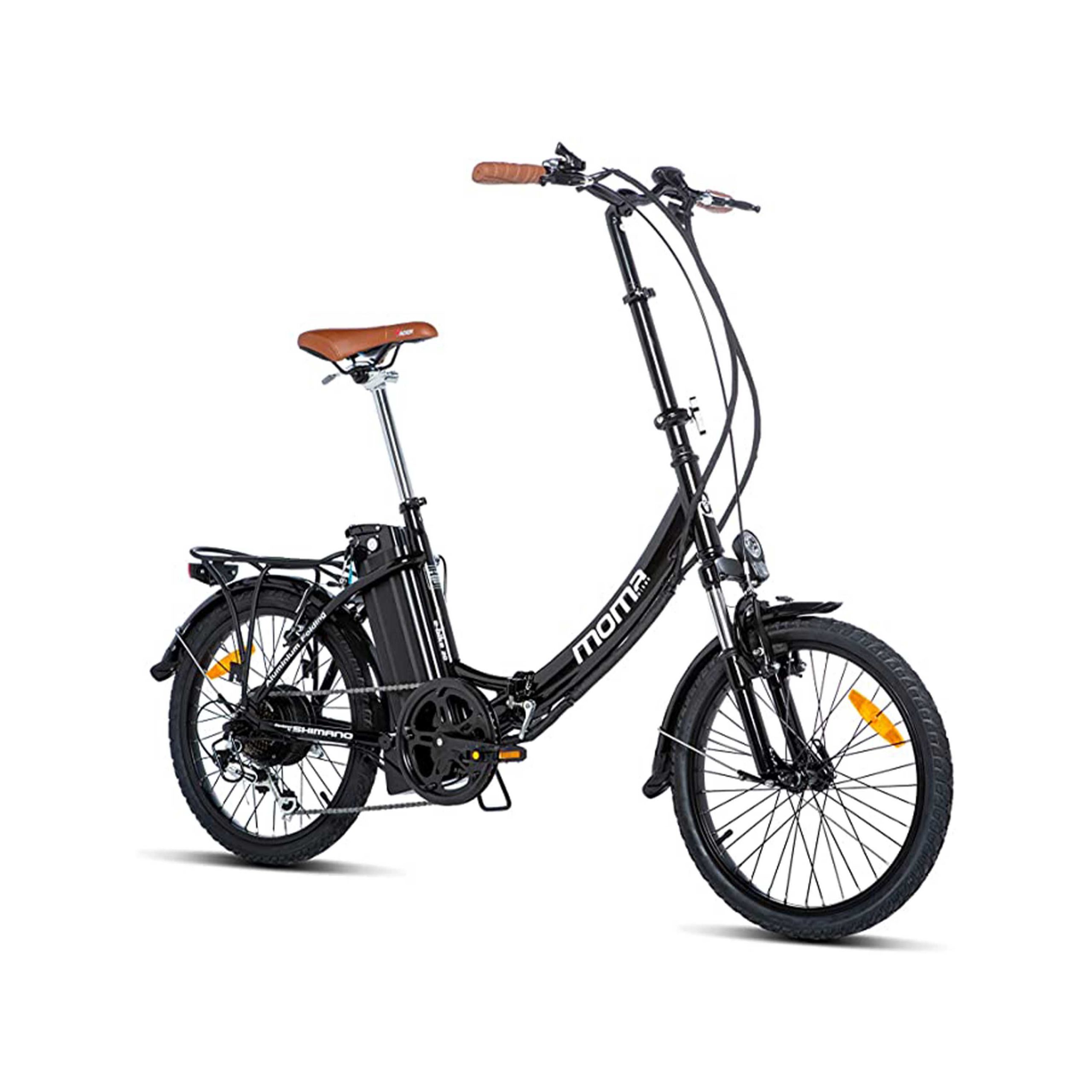 Cadre en aluminium 7005 Pliant Batterie Ion-Lithium 36V 16Ah Moteur Brushless 250 W Système d´assistance au pédalage Display LCD Indicateur niveau d´assistance au pédalage avec 3 niveaux Capacité de la batterie Chargeur batterie Dérailleur arrière professionnel TY-18 7v. Manettes de vitesse Shimano avec poussoir Pignon original Shimano Frein V-Brake en aluminium Potence en aluminium Selle aspect cuir Phare avant et arrière Led Porte-bagages arrière Garde-boue Sonnette Béquille Jantes de 20″ en aluminium à double paroi Très léger, 18 kg. Autonomie 80 km Vitesse max. 25 km/h Temps de charge 4h Peinture professionnelle en noir brillant Taille unique Dimensions plié: 80x72x40cm Hauteur réglable de la selle